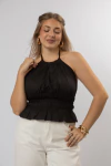 Regata confeccionada em crepe, com modelagem nadador que traz um toque moderno ao visual. A gola com babadinho adiciona delicadeza e movimento, enquanto o fechamento posterior por botão garante praticidade e acabamento elegante. As aplicações bordadas de florzinhas enriquecem a peça com um charme romântico e detalhado. Totalmente forrada, oferece conforto e segurança. Uma regata feminina, leve e perfeita para composições cheias de delicadeza.