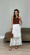 Shorts com delicados bordados florais, essa peça une romantismo e conforto. O cós alto valoriza a silhueta, o lastex posterior garante ajuste perfeito, e o forro interno aliado aos bolsos faca traz praticidade e elegância para composições leves e femininas.