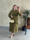 60% OFFVestido confeccionado em viscose mista, efeito texturizado, comprimento longuete, manga longa ampla, punho com elástico, forro interno curto, decote V, babados aplicados no busto com amarração ajustável, cintura marcada com elástico e passantes.