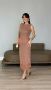 O vestido em tricô traz uma proposta moderna e sofisticada, com abertura na cintura que adiciona sensualidade na medida certa. O decote V alongado equilibra a silhueta, enquanto o forro interno garante praticidade e conforto ao vestir. Uma peça versátil que transita facilmente entre produções casuais e elegantes, perfeita para destacar estilo e personalidade.